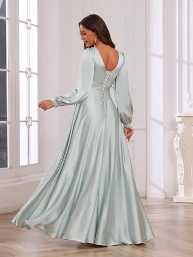 YOFF Long Sleeve Bridesmaid Dresses for Women 2025 V Neck Satin Formal Dresses Evening Gown with Slit YO184 7