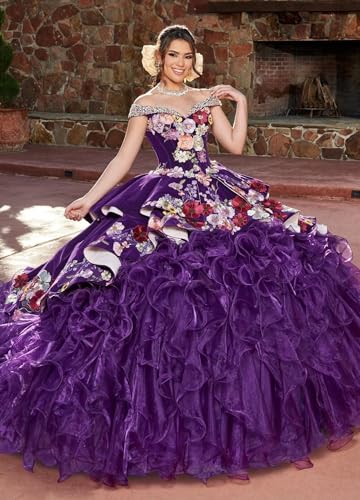 • Features:Luxury Velvet Mexic Quinceanera Dresses;Puffy Off Shoulder Ball Gown;Elegant Beaded Sweeth 15 16 Dress with Train;Embroidery Appliques XV Dress for Women;Layered Ruffles Vestido De 15 Años; Luxury Organza Quince Dress