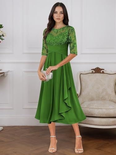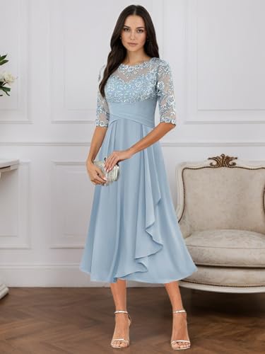 Tea Length Mother of The Bride Dresses for Bride 2025 Lace Chiffon Wedding Guest Formal Dress YH36 4