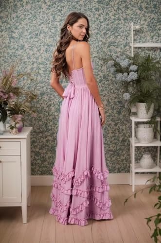Floral Chiffon Bridesmaid Dresses for Women Wedding Guest Ruffle A-Line Prom Dresses Long with Slit 5