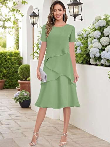 • Features: Tea length mother of the bride dress for wedding, tiered chiffon grandmother of the groom dress for women, scoop neck formal wedding guest dress with sleeves, a line ruffle evening party ball gown, zipper