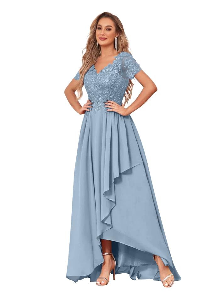 • Features:Lace Appliques Mother of The Bride Dresses for Women 2025,Chiffon Ruffles Long Mother of The Groom Dresses,Chiffon Short Sleeve Formal Evening Dresses for Women,A-line High Low Wedding Guest Dress.Flowy Chiffon,Lace Appliques,V-neck,Short Sleevs,A-line,Long,High Low Ruffles,Lace Up Back,with Pockets,Built in bra,Plus Size.