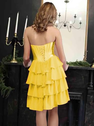 ForElise Strapless Satin Homecoming Dresses for Teens Tiered Ruffles Corset Short Prom Dress A Line Cocktail Party Gown 5