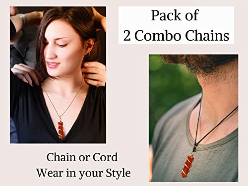 HOT ! Carnelian Necklace for Women, Real Carnelian Crystal Gold Wrapped Arrowhead (Combo Pack of 2 Chains)
