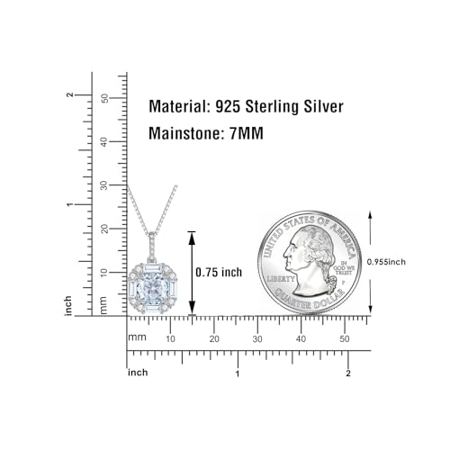 More information about 925 Sterling Silver Necklace for Women, Halo 2Ct Square (7x7MM) Imitation-diamond 5A Cubic Zirconia Pendant 18"+2" Perfect Jewelry Gifts