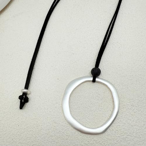 • Choker Necklace for Women:Featuring a striking handcrafted silver-toned large pendant in an organic, asymmetrical shape, this piece hangs from a supple leather cord accented by a sliding bead clasp—allowing you to customize your look in seconds.