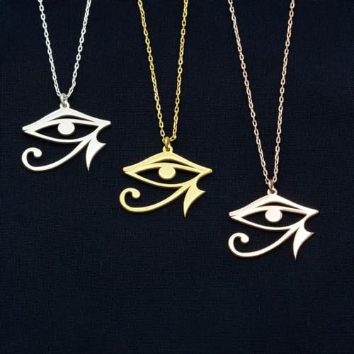 HOT ! 925 Sterling Silver Amulet Reiki Eye Of Horus Necklace For Men Women, 14K Yellow Gold Minimalist All Seeing Eye Necklace - Vinttage Eye Of Ra Necklace, Eye Of Horus Pendant Illuminati Necklace For Halloween Christmas Gifts
