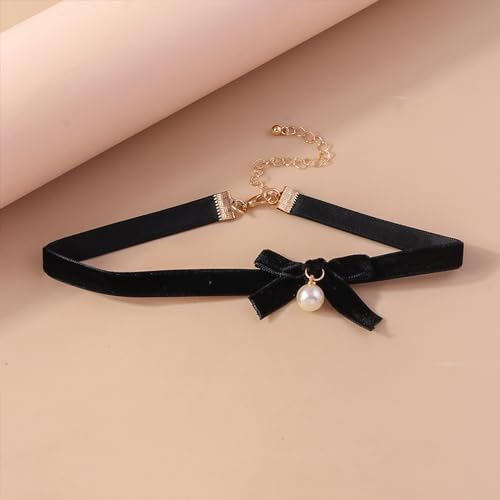 HOT ! Bow Necklace for Women Red Bow Choker Black Ribbon Necklace Pearl Pendant Necklace Cute Bow Knot Necklace for Christmas Gifts