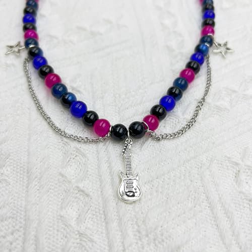 More information about TV Girl Cosplay Choker Necklace for Women Guitar Natural Stone Red blue Bead Chokers Hip Hop Rockstar Fashion TV Girl merch Jewelry Gifts