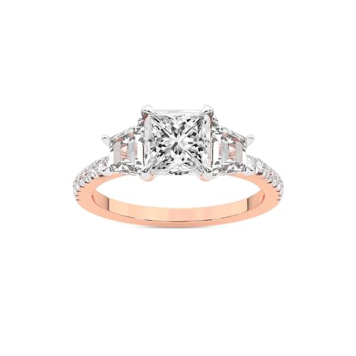 FRIENDLY DIAMONDS Lab Grown Diamond Engagement Ring For Women 0.50-6 Carat IGI Certified | 14K Or 18K White, Yellow Or Rose Gold | Lavinia Three Stone Trapezoid Diamond Ring | FG-VS1-VS2 Quality 5