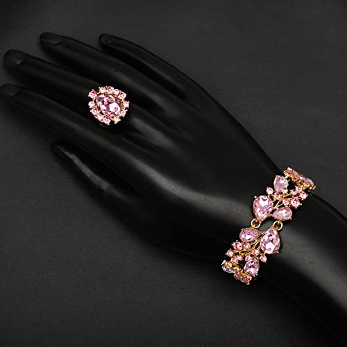 CSY 4 Pcs/Set Austrian Crystal Necklace Earrings Bracelet Ring Bridal Jewelry Sets for Brides Wedding Party Costume Accessories Gifts for Women 5