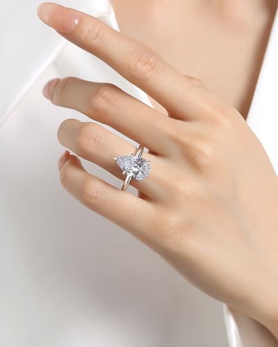 3.5CT/5CT Pear Shaped Engagement Ring,Solitaire Pear Engagement Rings for Women,S925 Sterling Silver Promise Wedding Ring 5