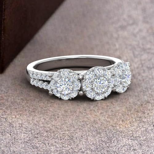 HOT ! 1 Carat 3-Stone Prong Set Diamond Engagement Ring in 10K Solid Gold - IGI Certified