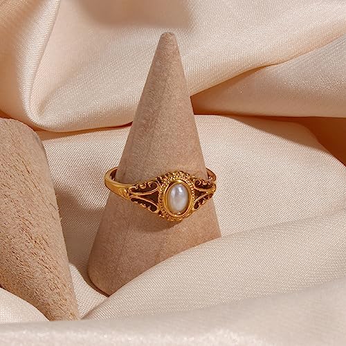 Gold Rings for Women Non Tarnish Natural Freshwater Pearl Stainless Steel 18K Gold Plated Ring,Bridesmaid Wedding Jewelry,Promise Rings for Her 6