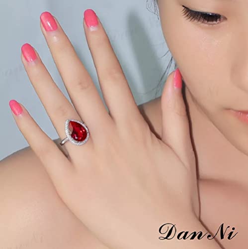 ASFKIPMF Halo Teardrop Pear Shape Simulated Cubic Zirconia Bridal Ring Ruby Garnet Ring 925 Sterling Silver AAA Zircon Red Gem pear Shaped Rhodium Plated Promise Ring for Her Valentine's Day Size 8 5
