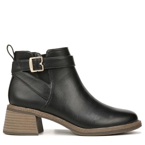 • STYLE: Ankle bootie with wraparound strap, iconic Dr. Scholl's buckle, built-in stretch, and 2 stacked block heel
