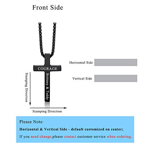 • Personalized Cross Necklace: Personalized your own cross necklace.The Horizontal side can be engraved with 13 characters, and vertical side could be engraved with 18 characters.Times New Roman for engraving text.