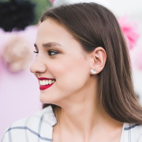 4 Pair Earrings Studs for Men Gold Cubic Zirconia, Ymapinc Surgical Steel CZ Studs Earrings for Men Women, 4 Models Round and Square Stud Teardrop Shapes 7