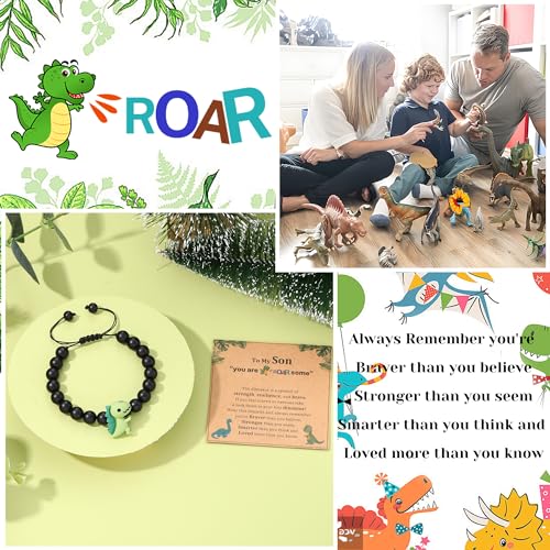 Dinosaur Bracelets for Teen Boys Gifts for Son/Nephew/Grandson Black Beaded Bracelets with Dinusaur Back to School/First Day Of schoo/Birthday Gifts for Him/Bonus Son/Brother Kindergarten 7