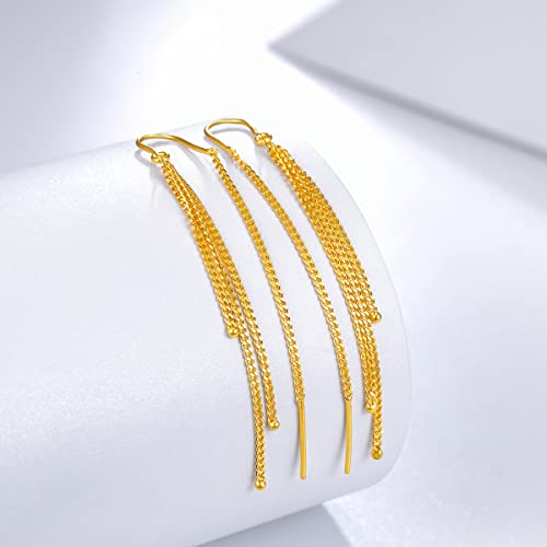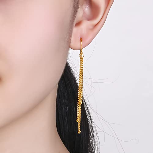HOT ! 24K Solid Gold Earrings for Women, Real Pure Gold Dangle Earrings Lightweight Dainty Fashion Flower Ball Star Tassel Threader Earrings for Men Girlfriend