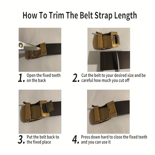 • Trim to fit: Adjustable belt, Removable Buckle for Cut to Fit, Suitable for size 28-43 waist. You can simply trim the strap length by yourself to fit your size if the mens belt strap is too long for you.