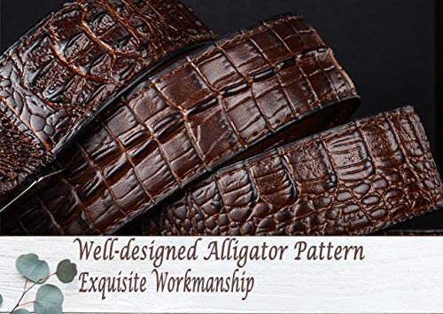 Men's Belt,Alligator Belt Cowhide Crocodile Print Belt Buckle 5
