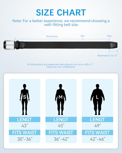 • Perfect Fit: Engineered with tight-performed elastic, this stretch woven belt won't lose up or deform easily. Whether squatting or bending, it effortlessly stretches, bouncing back to its original form when you stand.