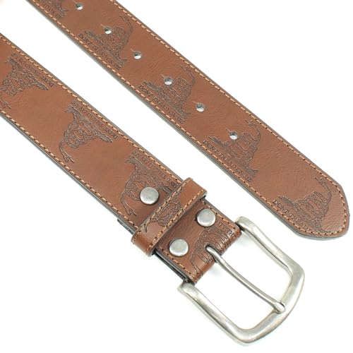 Don’t Tread on Me Leather Belt Strap and Metal Buckle 1.5" Wide with Snaps - Gadsden Flag Patriotic American History USA 1
