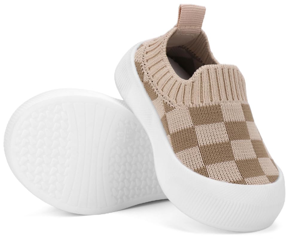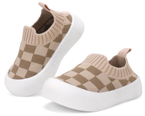 QIETION Baby First-Walking Shoes Trainers Toddler Infant Boys Girls Soft Sole Non Slip Cotton Canvas Mesh Breathable Lightweight TPR Material Slip-on Sneakers Outdoor 6