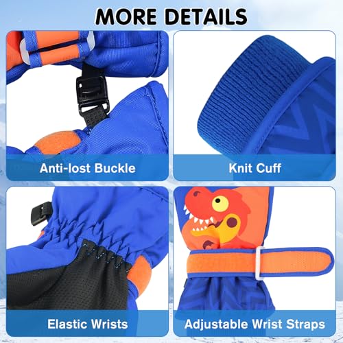 • More Details: There are some Reflective design areas on the ski gloves, which offer safety for children outdoors and at night. With the anti-lost buckle, kids winter gloves can be hooked together and more convenient to keep the snow gloves.