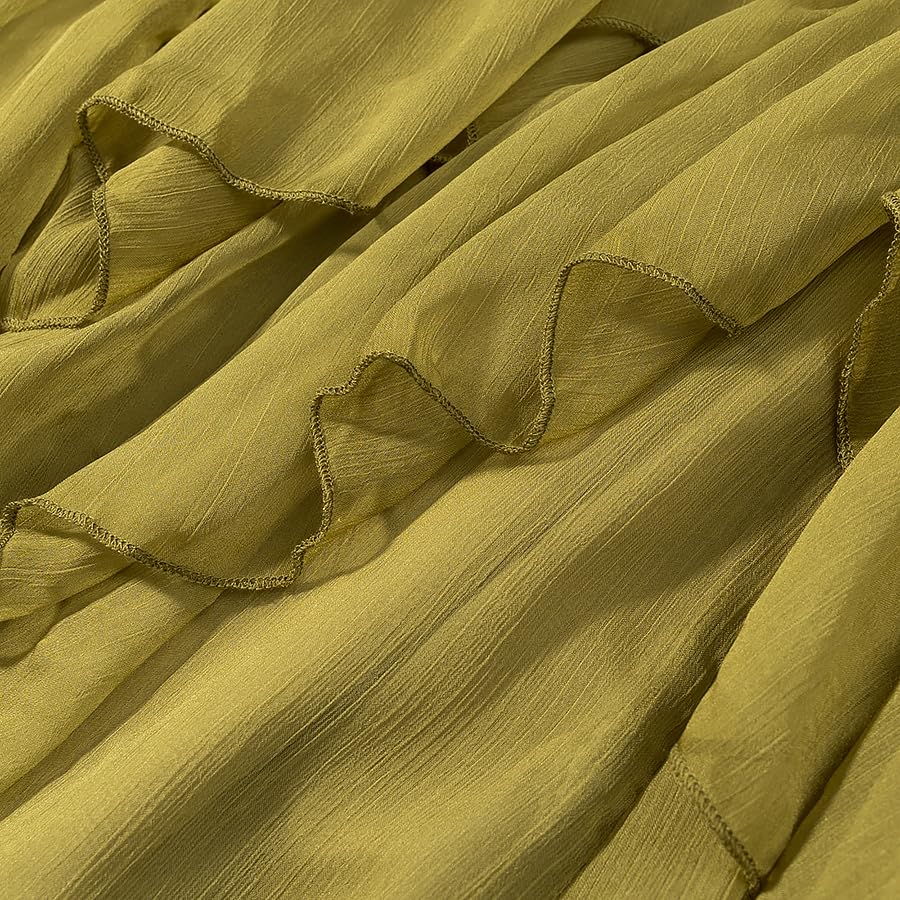 • ELEGANT DESIGN: Olive green chiffon maxi skirt featuring multiple layers of flowing ruffles and asymmetrical hem for a dramatic, romantic look