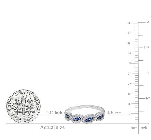 Dazzlingrock Collection Round Blue Sapphire & White Diamond Swirl Stackable Anniversary Ring for Women in Solid Gold 1