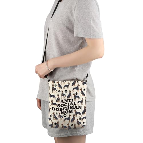G2TUP Funny Doberman Lover Gift Anti Social Doberman Mom Crossbody Bag Doberman Mama Travel Bag Dog Lover Gift 3