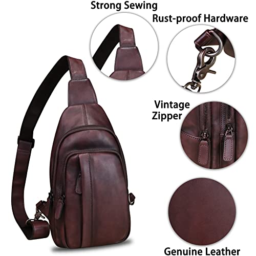 IVTG Genuine Leather Sling Bag Crossbody Casual Hiking Daypack Vintage Handmade Chest Shoulder Backpack Motorcycle Cycling Purses (Coffee) 5