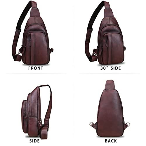 IVTG Genuine Leather Sling Bag Crossbody Casual Hiking Daypack Vintage Handmade Chest Shoulder Backpack Motorcycle Cycling Purses (Coffee) 6