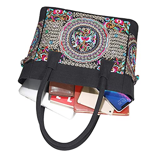 SILKAREA Embroidered Large Canvas Tote Bag for Women with Zipper Handmade Vintage Handbag Shoulder Bag 5