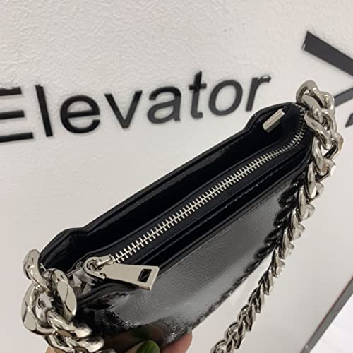 Women's black mini patent leather chain, cool girl simple fashion diagonal straddle shoulder bag 5
