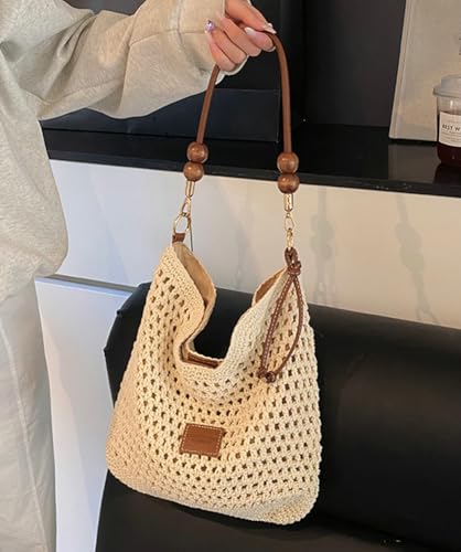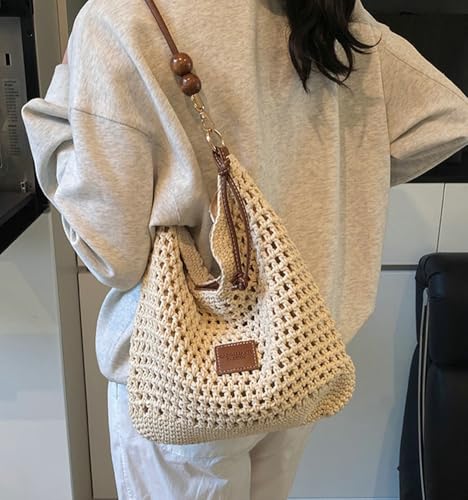 Straw Beach Bags for Women Crochet Tote Bag Slouchy Shoulder Purse with 2 Straps Soft Boho Woven Crossbody Bag Summer 5