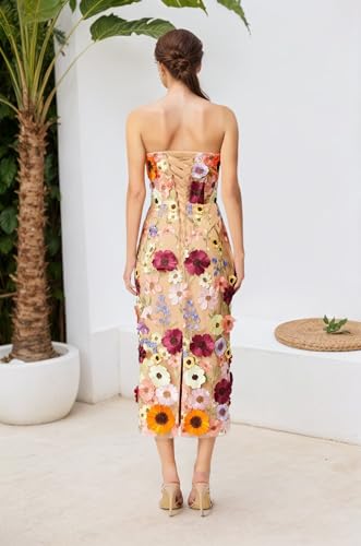 • Material: The Mermaid 3D Floral Embroidery Tulle Prom Dresses for women 2025/Strapless Formal Gown Evening Dresses long/Tea Lengh Flower appliques Bridesmaid Dresses for wedding/Sleeveless formal evening party gowns are made of high quality 3D Floral Applique Tulle material. The fabric is soft and comfortable to the skin and the dresses are fashionable.