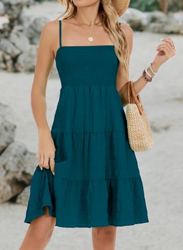 • Fabric: Women's spaghetti strap smocked short summer casual sundress is crafted from lightweight, breathable materials, ideal for 2025 vacation beach resort wear. The soft fabric provides a comfortable fit, making it suitable for warm weather activities