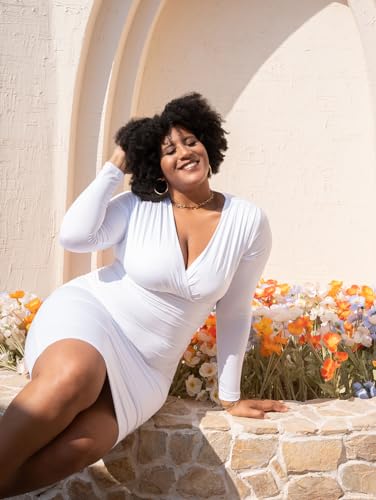 More information about BEAGIMEG Women's Sexy Bodycon Long Sleeve Ruched Deep V Neck Solid Party Club Midi Dress