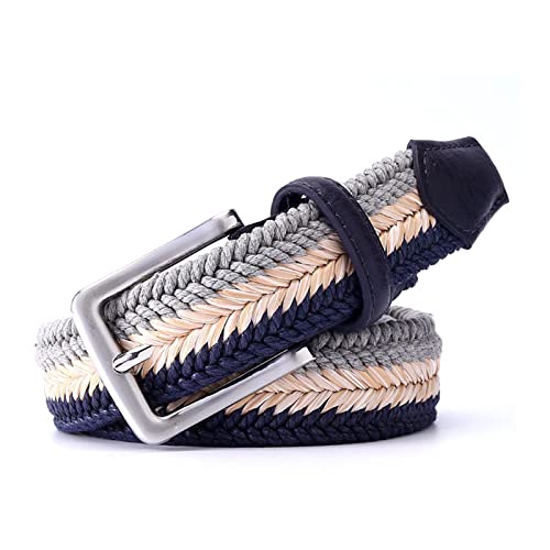 HOT ! Briaded Belts For Men Women Woven Belt No Holes No Stretch Belts 3.5 CM Width Belt Length 32 To 59 Inch Waist(46in/115cm,GreyStrawNavy)