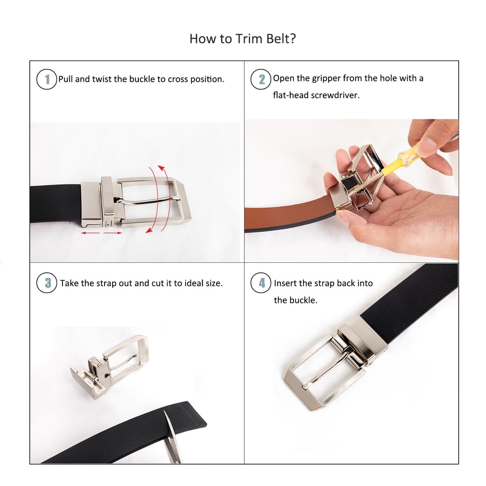 Men's Reversible Leather Belt for Dress Casual Jeans with Rotating Buckle - One Strap Reverse for 2 Sides 4