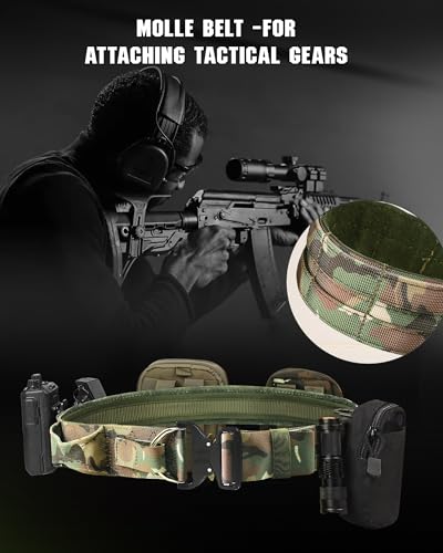 HOT ! Tactical Belt for Men, Molle Gun Belt 2" & 1.5" with Laser-Cut Shooting Hunting Duty Belts Quick Release Buckle