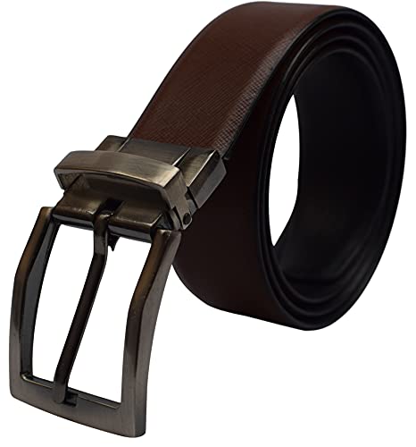 HOT ! MARSHAL Men's Reversible Leather Belt 1.4" Wide Black & Brown Rotating Buckle Classic Style Dress Belt Jean Belt For Men