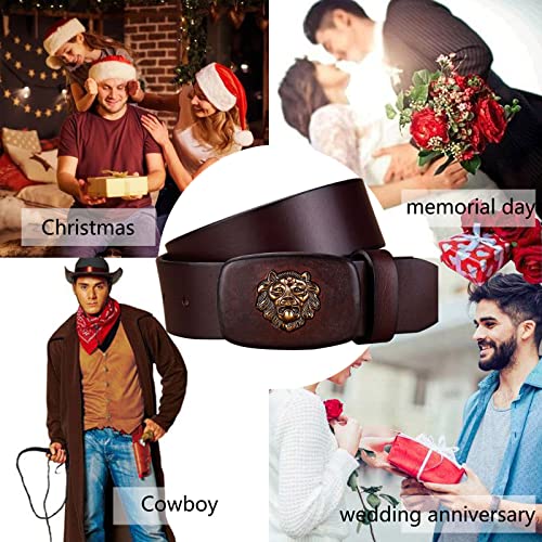 Men's Belts,Leather Smooth Buckle Lion Belt Fashion Personality Wear Length Adjustable Men's Belt 5