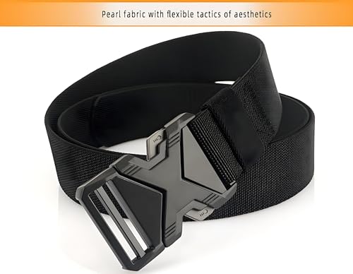1.5 Inch Wide - Tactical Belt with Quick-Release Buckle, Military Style Polyester fiber elastic waistband, Black  4