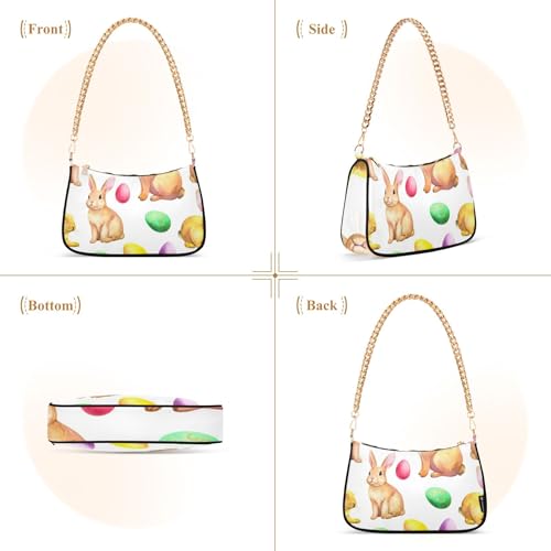 Rabbits Easter Eggs White Aesthetic Shoulder Bag for Women Retro Formal Purse Hobo Animals Clutch Handbag Zipper Closure 7