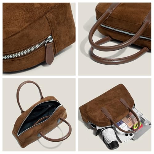 More information about JOLLQUE Suede Handbag for Women,Vintage Top Handle Shoulder Bag,Retro Winter Autumn Work Tote Purse