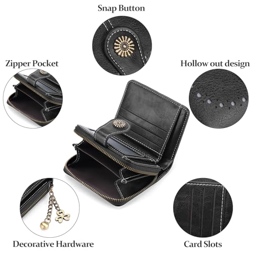 Small Genuine Leather Wallet for Women Bifold RFID Blocking with Zipper Coin Pocket (Black) 4